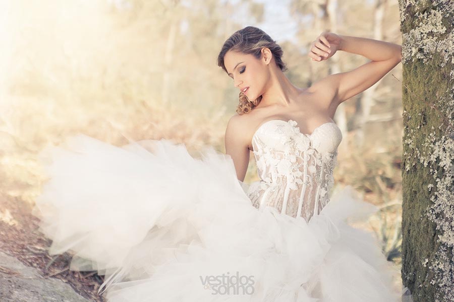 Vestido chique! Corpete feito em renda com decote em coração, saia curta e volumosa o que vai dar um toque chique, glamoroso e diferente à noiva.