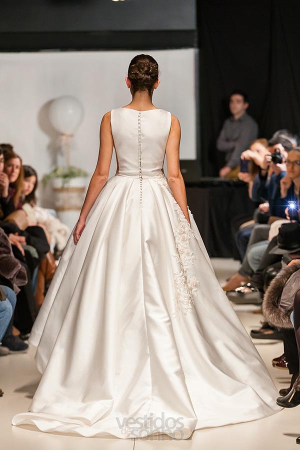 Vestido elegante, curto à frente e cauda comprida atrás! Aberto por baixo dos braços, decote em barco, aplicações em renda no peito e na saia. Vestido perfeito para uma noiva que quer andar à vontade sem ter medo de pisar o vestido.