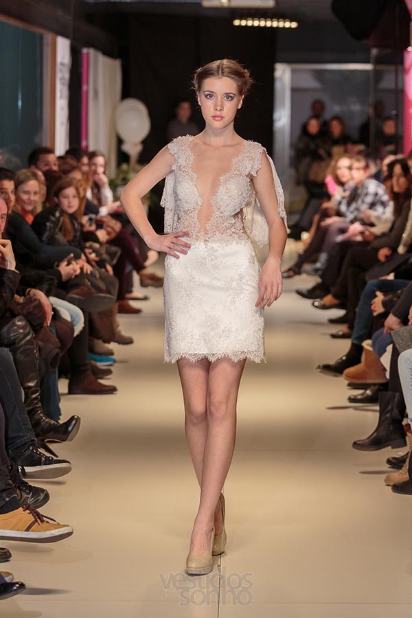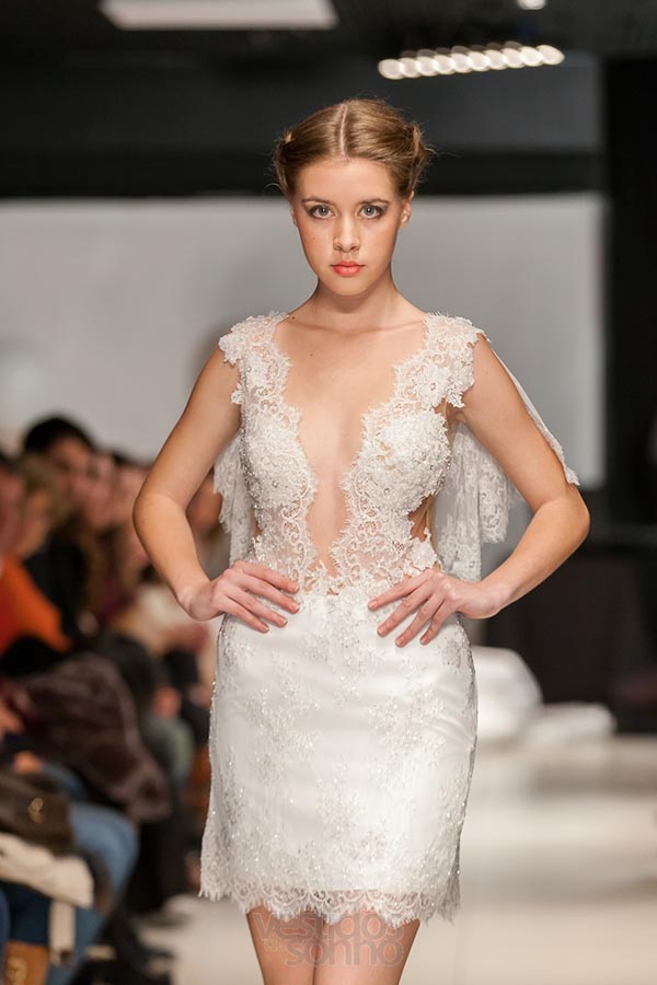 Vestido 2 em 1. Vestido princesa com a parte de cima feita em renda, decote em V na frente e na costa, superelegante. Tirando a saia comprida, fica um vestido curto todo feito em renda. Feito para as noivas que querem ficar lindas duranteo casamento e durante o jantar, quer ficar linda, elegante e confortável.