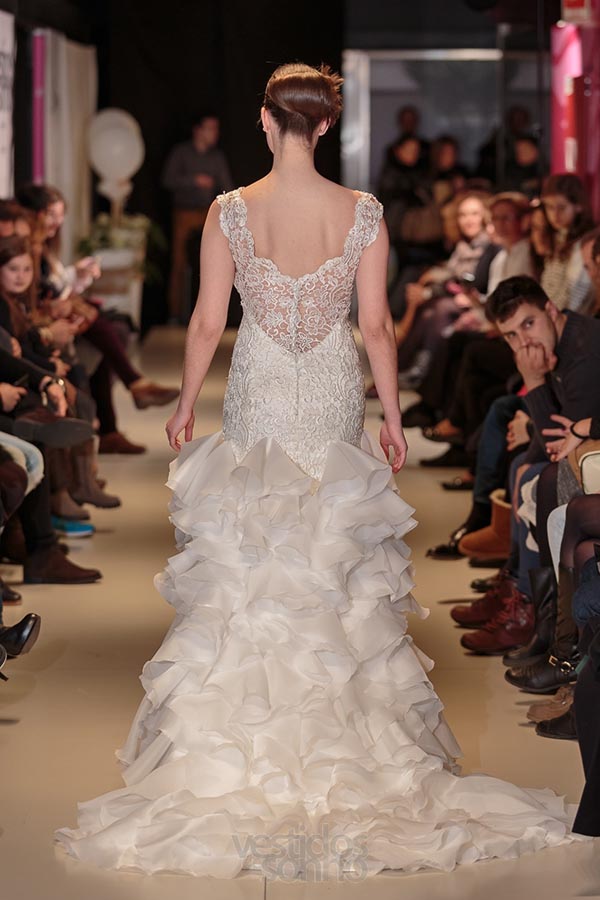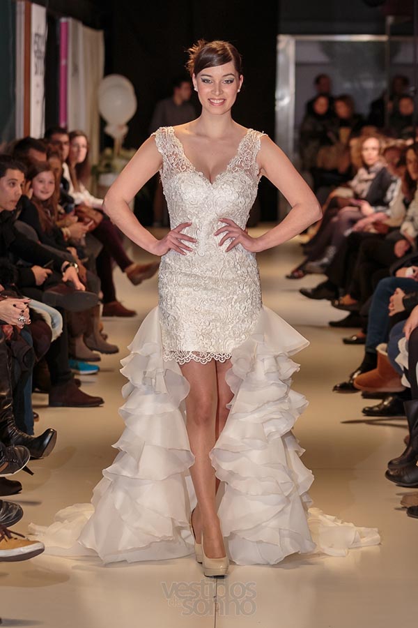 Mais um dos nossos vestidos curtos, mas muito elegante, feito em renda, com decote em coração, e a cauda é feita com folhos. Perfeito para acentuar bem a beleza feminina.