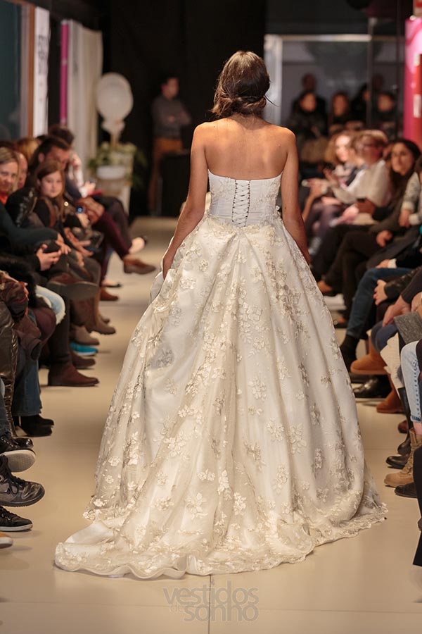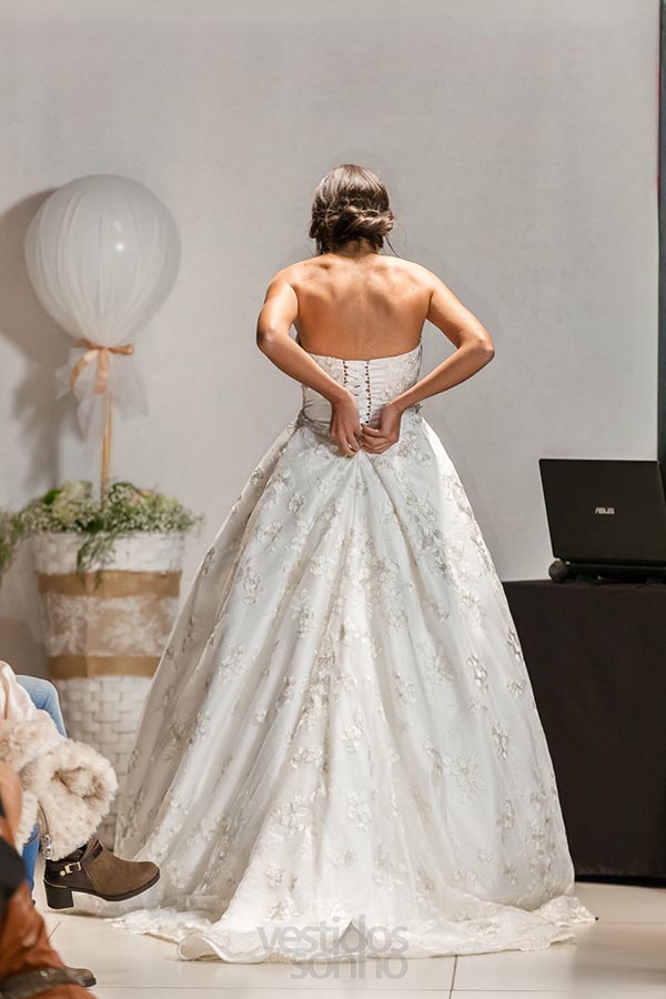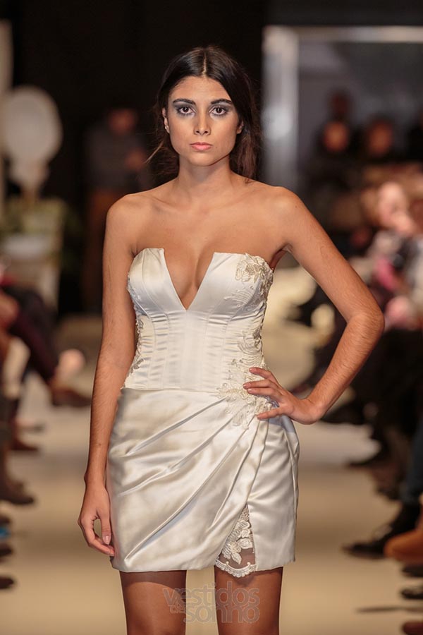 Vestido princesa 2 em 1. Corpete simples com aplicações em renda e saia florida. Quando tira a saia comprida fica um vestido curto e justo, saia feita em cetim, perfeito para se sentir confortável no jantar do casamento e/ou no resto do dia.